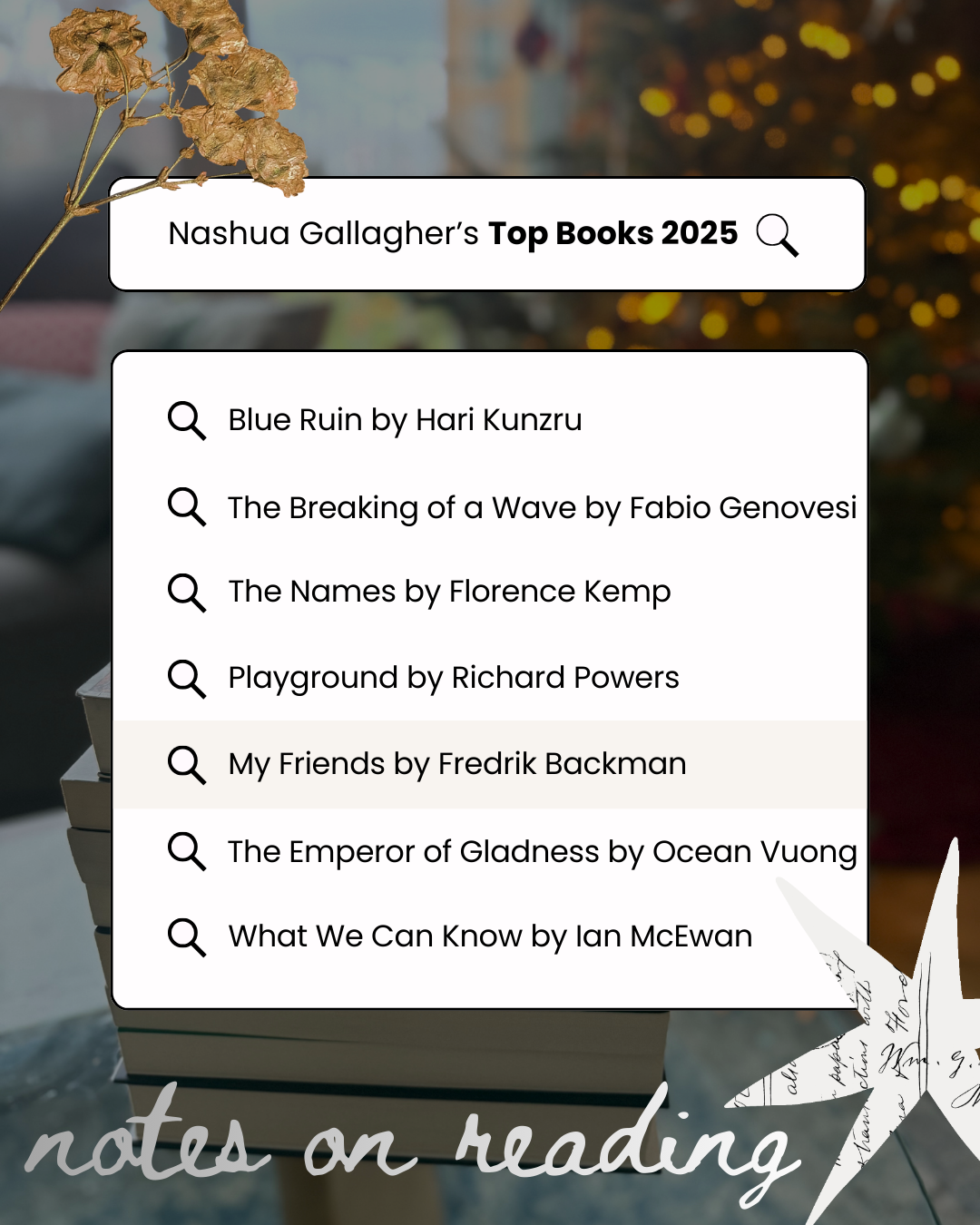 That it touched on the lives of esteemed and therefore crotchety poetry types was a bonus. I sniggered at what I recognised and was moved by the emotional resonance as characters were revealed. Absolutely everyone is marvellously, morally grey in this book. I texted a friend halfway, ‘it’s maddening – he writes with such lucidity and nuance, I can’t imagine [one of his contemporaries] writing about AI and geopolitical disaster with this sort of alacrity.’