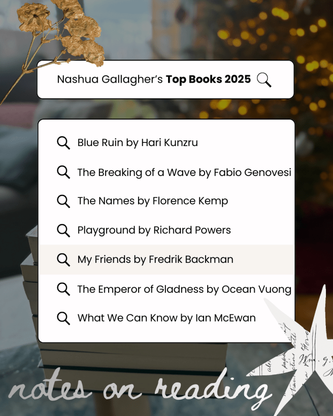 I don’t want to tell you anything about the plot. Go read it, and let’s chat over voicenotes or with takeaway coffee with our heels disturbing autumnal mulch. A perfect late-year read.